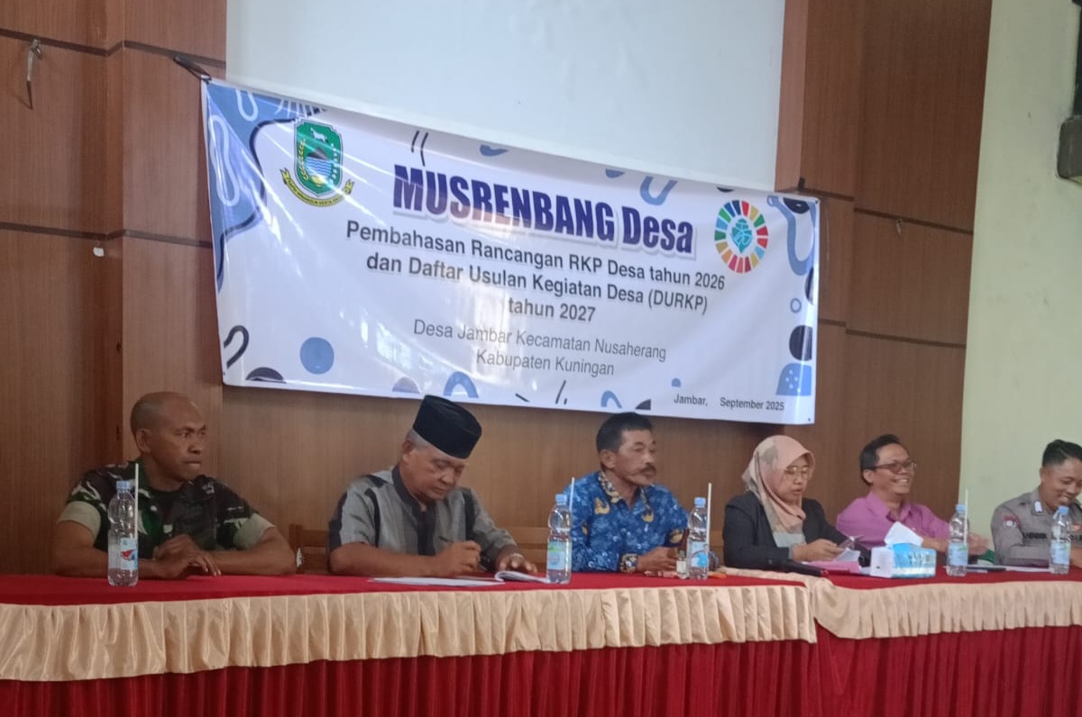 Kuningan,Aktualid.net Desa Jambar Kecamatan Nusaherang Kabupaten Kuningan hari ini Rabu ( 1/10/2025) Melaksanakan Musrembangdes untuk menyusun Rencana Kerja Pembangunan ( RKP ) Tahun 2026 dan Membuat Daftar Usulan Kegiatan Desa ( DURKP ) Tahun 2027.